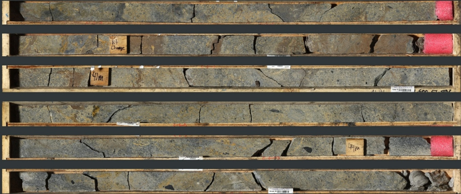 - Intersected 4.40 m of stratiform to massive sulphide mineralization grading 9.35% Zn, 1.38% Pb, and 21.2 g/t Ag, including 1.20 m of 23.44% Zn, 4.15% Pb, and 55.8 g/t Ag