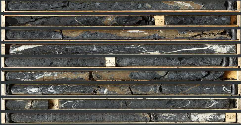 Photo 3: High resolution core scanning image of sphalerite-pyrite-siderite vein mineralization in NB23-037 (235.1 m to 244.9 m)